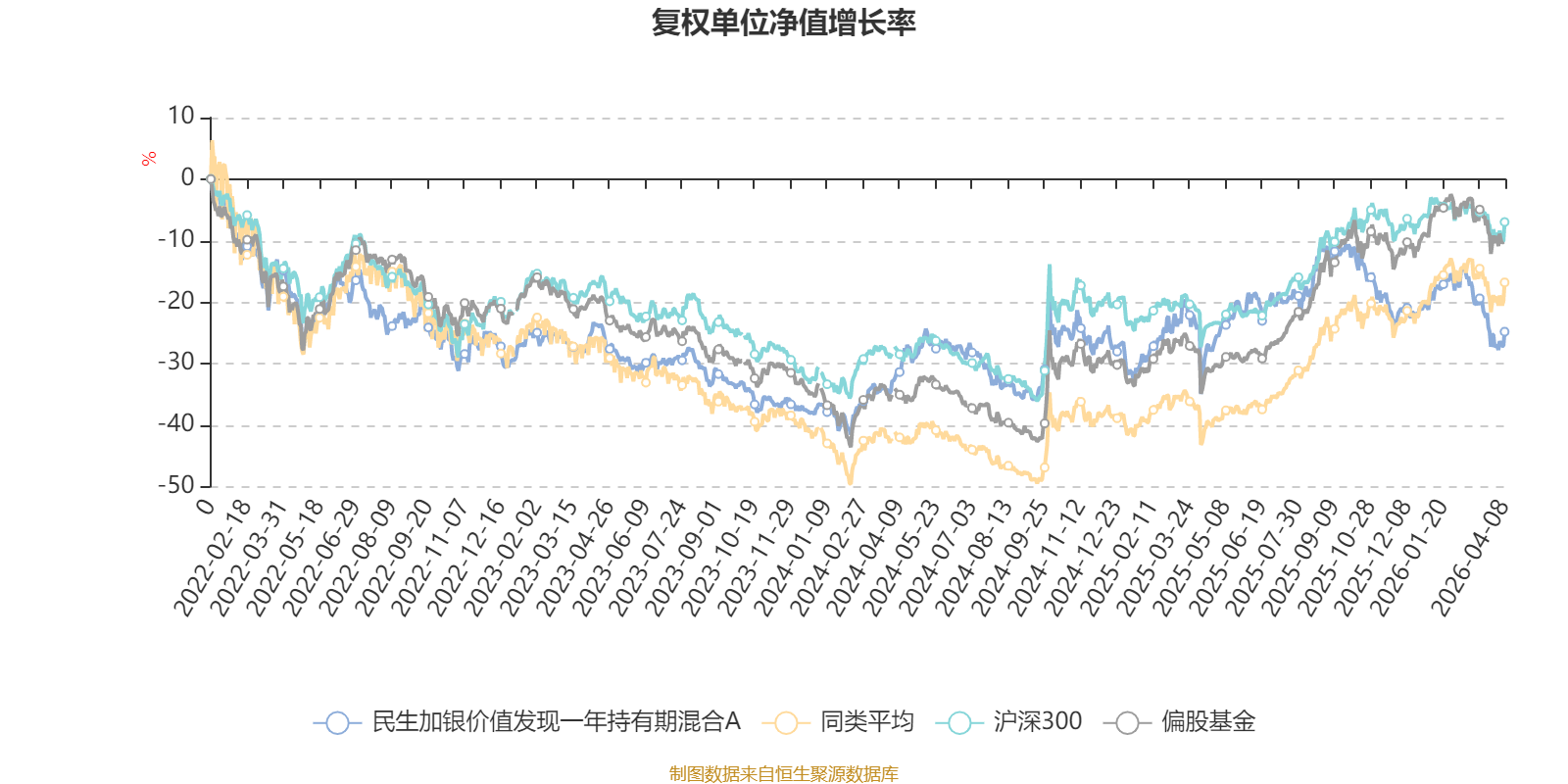 截至4月8日,民生加银价值发现一年持有期混合A近三个月复权单位净值增长率为-6.37%,位于同类可比基金529/621;近半年复权单位净值增长率为-15.44%,位于同类可比基金596/621;近一年复权单位净值增长率为11.99%,位于同类可比基金567/618;近三年复权单位净值增长率为-2.01%,位于同类可比基金436/559。