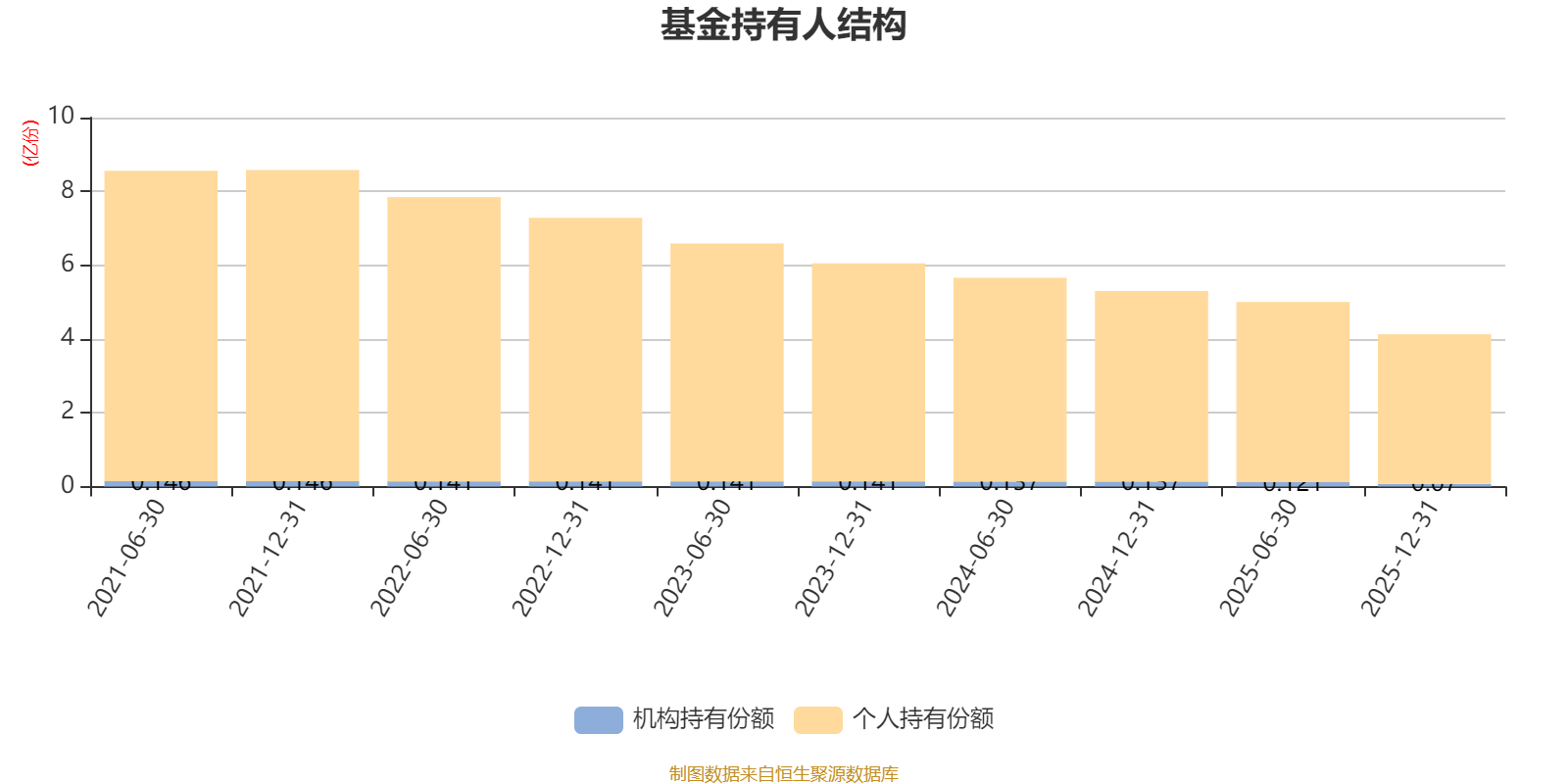截至2025年12月31日,基金持有人共计5042户,合计持有4.13亿份。其中管理人员工持有38.15万份,占比0.09%,机构持有份额占比1.69%,个人投资者占比98.31%。