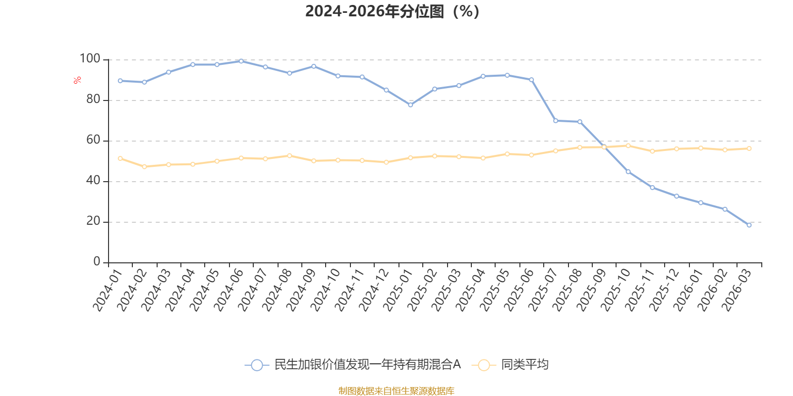 通过所选区间该基金净值增长率分位图,可以观察该基金与同类基金业绩比较情况。图为坐标原点到区间内某时点的净值增长率在同类基金中的分位数。