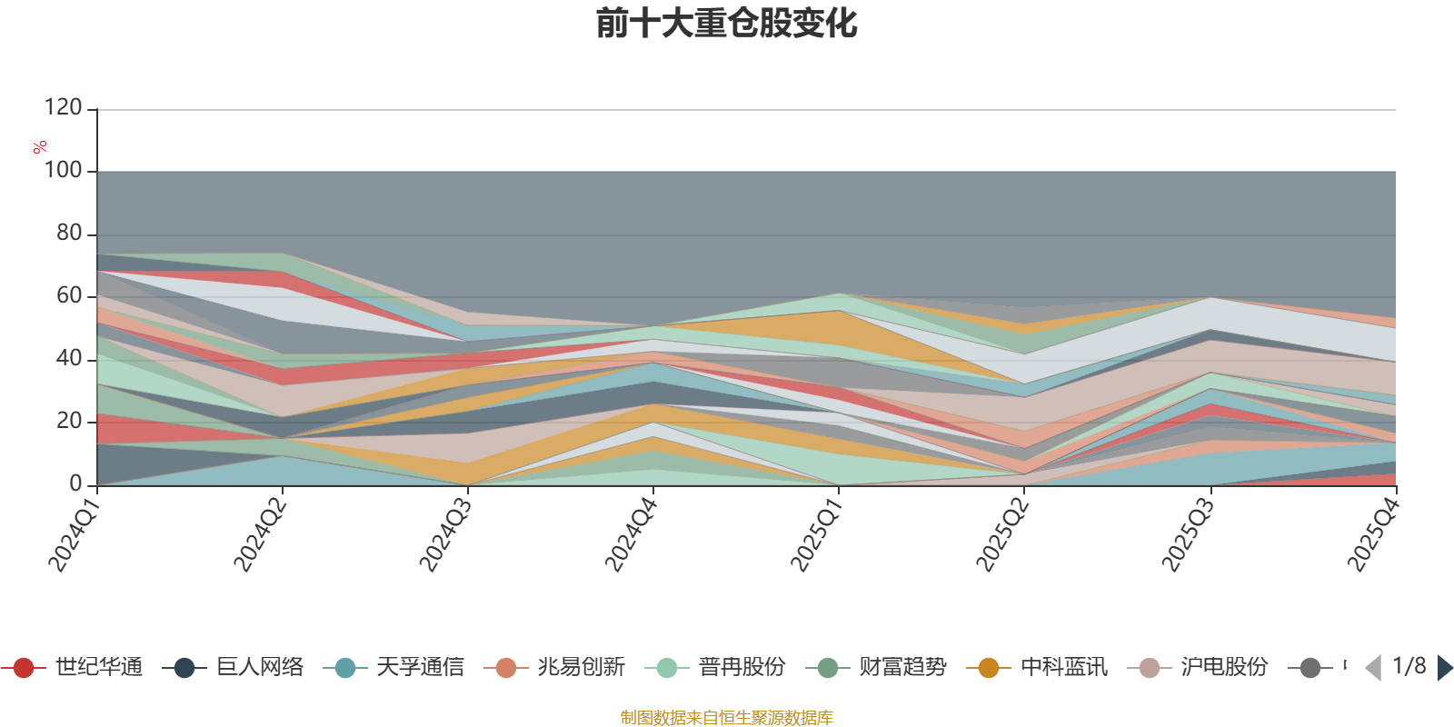 该基金持股集中度较高。截至2025年末,基金十大重仓股分别是中际旭创、新易盛、天孚通信、菲利华、巨人网络、世纪华通、完美世界、天华新能、源杰科技、应流股份。