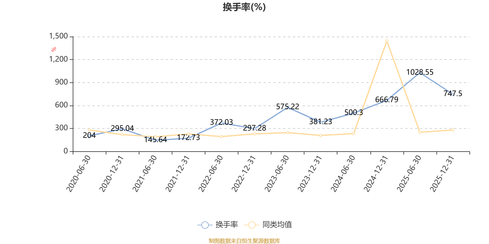 截至2025年12月31日,基金最近一年换手率约1845.36%,持续1年高于同类均值。