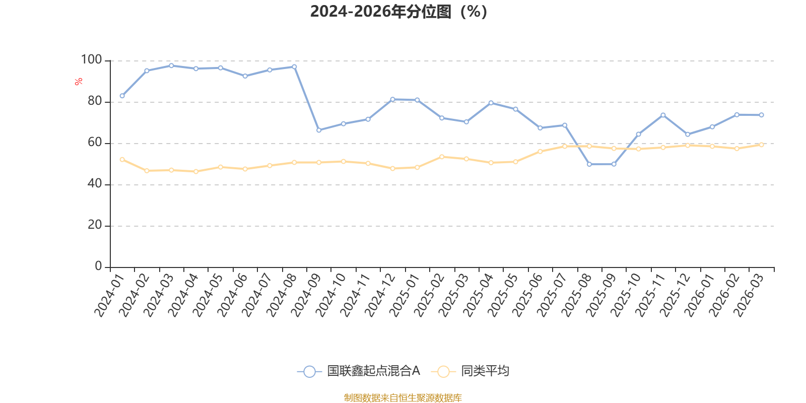 通过所选区间该基金净值增长率分位图,可以观察该基金与同类基金业绩比较情况。图为坐标原点到区间内某时点的净值增长率在同类基金中的分位数。