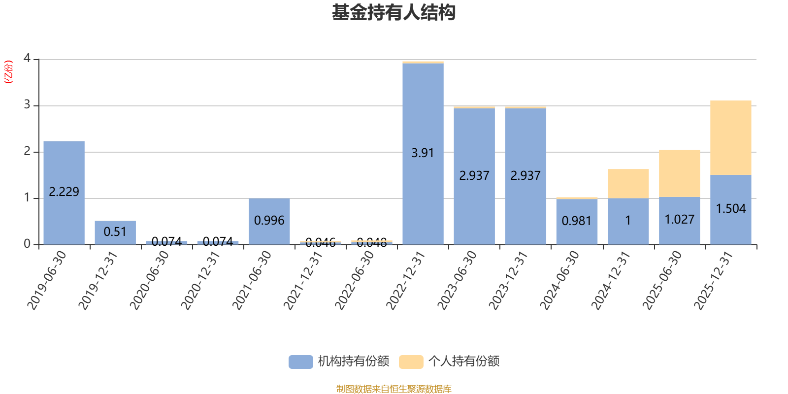 截至2025年12月31日,基金持有人共计3269户,合计持有3.11亿份。其中管理人员工持有950.6万份,占比3.06%,机构持有份额占比48.41%,个人投资者占比51.59%。