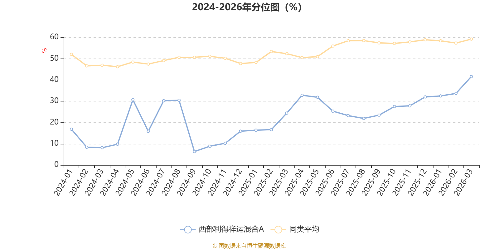 通过所选区间该基金净值增长率分位图,可以观察该基金与同类基金业绩比较情况。图为坐标原点到区间内某时点的净值增长率在同类基金中的分位数。