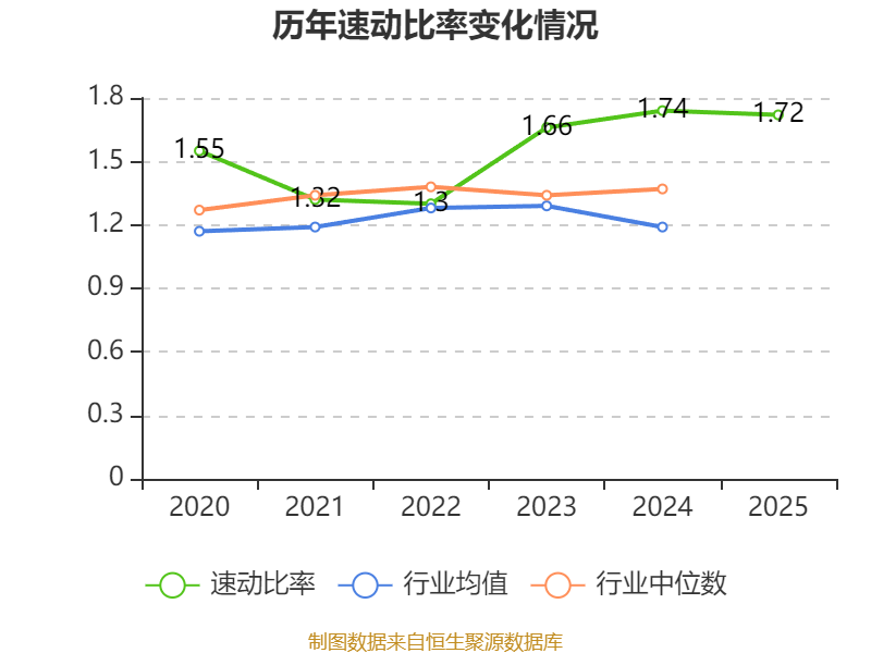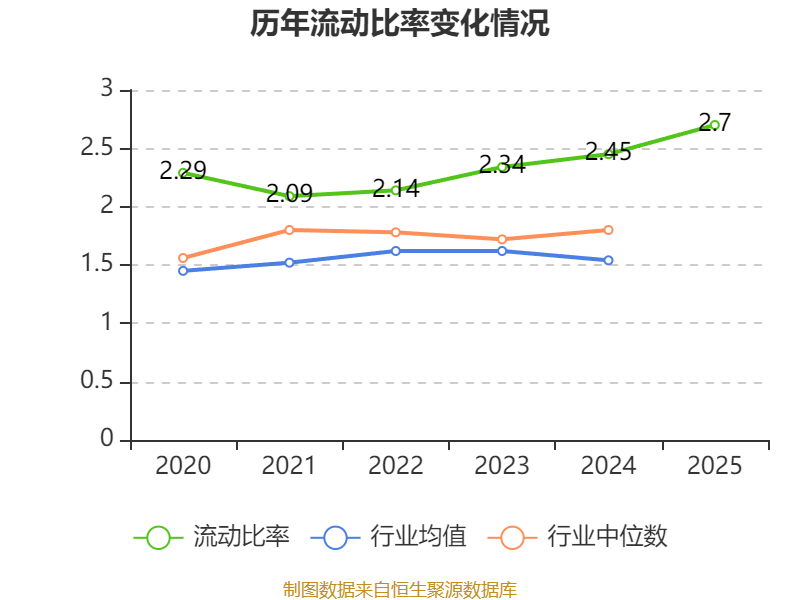 2025年,公司流动比率为2.7,速动比率为1.72。