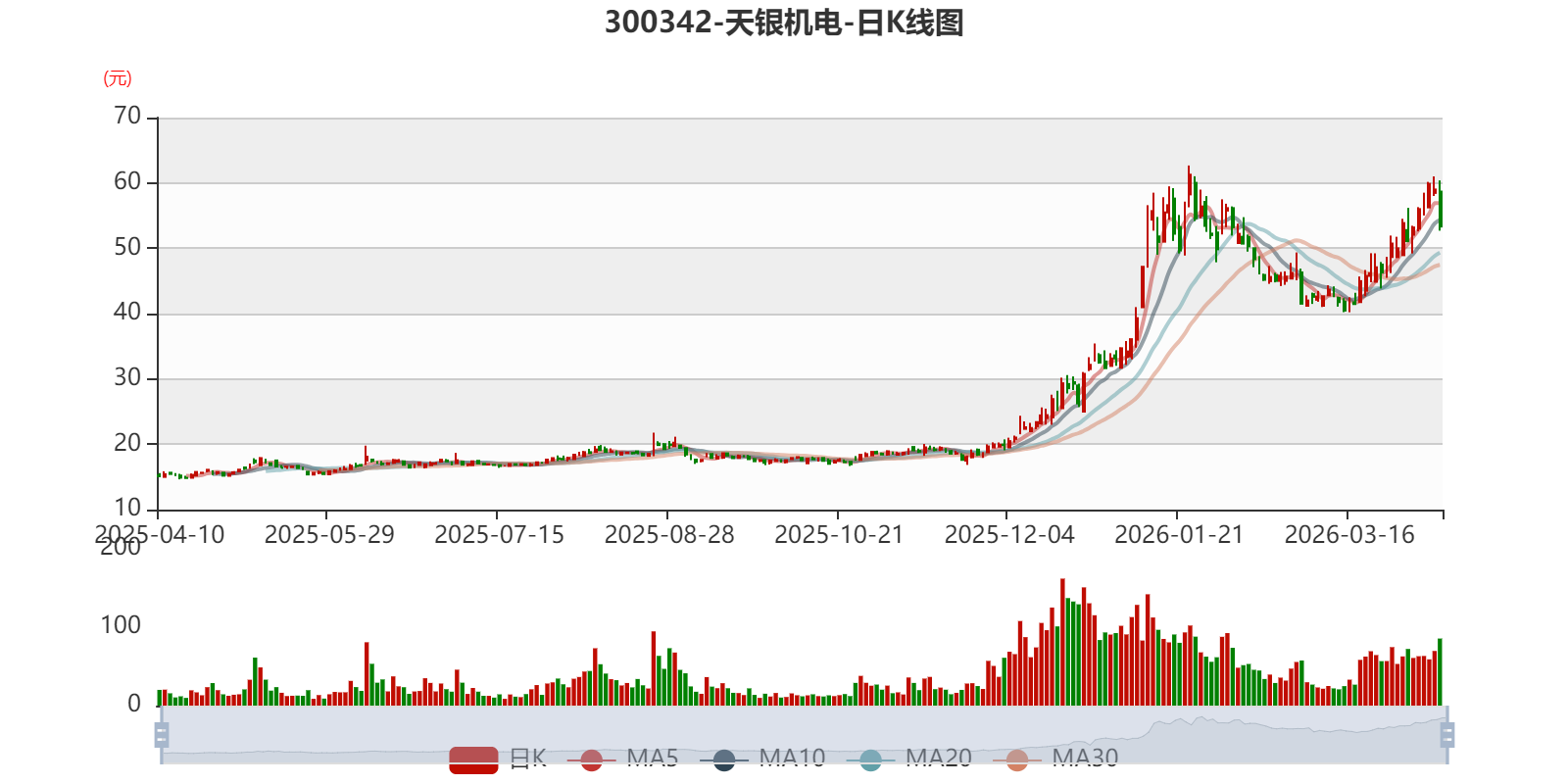 中证智能财讯天银机电(300342)4月10日披露2025年年度报告。2025年,公司实现营业总收入8.21亿元,同比下降21.63%;归母净利润1279.13万元,同比下降85.85%;扣非净利润1183.58万元,同比下降83.23%;经营活动产生的现金流量净额为-603.87万元,上年同期为9553.86万元;报告期内,天银机电基本每股收益为0.0301元,加权平均净资产收益率为0.82%。公司2025年度分配预案为:拟向全体股东每10股派现0.2元(含税)。