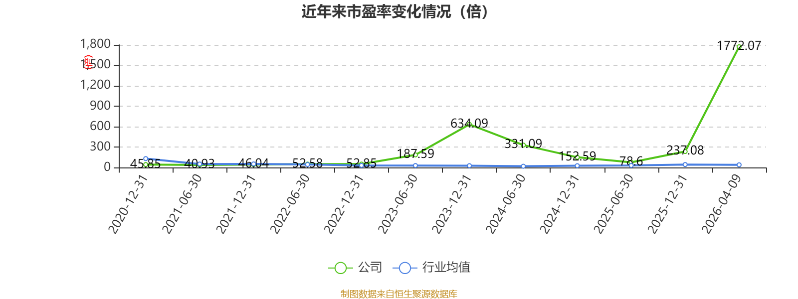 以4月9日收盘价计算,天银机电目前市盈率(TTM)约为1772.07倍,市净率(LF)约14.56倍,市销率(TTM)约27.6倍。