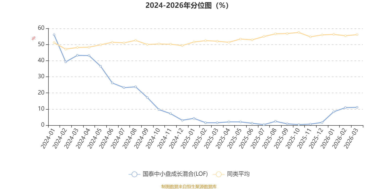 通过所选区间该基金净值增长率分位图,可以观察该基金与同类基金业绩比较情况。图为坐标原点到区间内某时点的净值增长率在同类基金中的分位数。