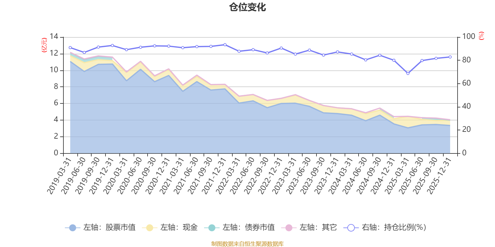 据定期报告数据统计,近三年平均股票仓位为82.41%,同类平均为85.83%。2021年末基金达到93.4%的最高仓位,2025年一季度末最低,为68.71%。
