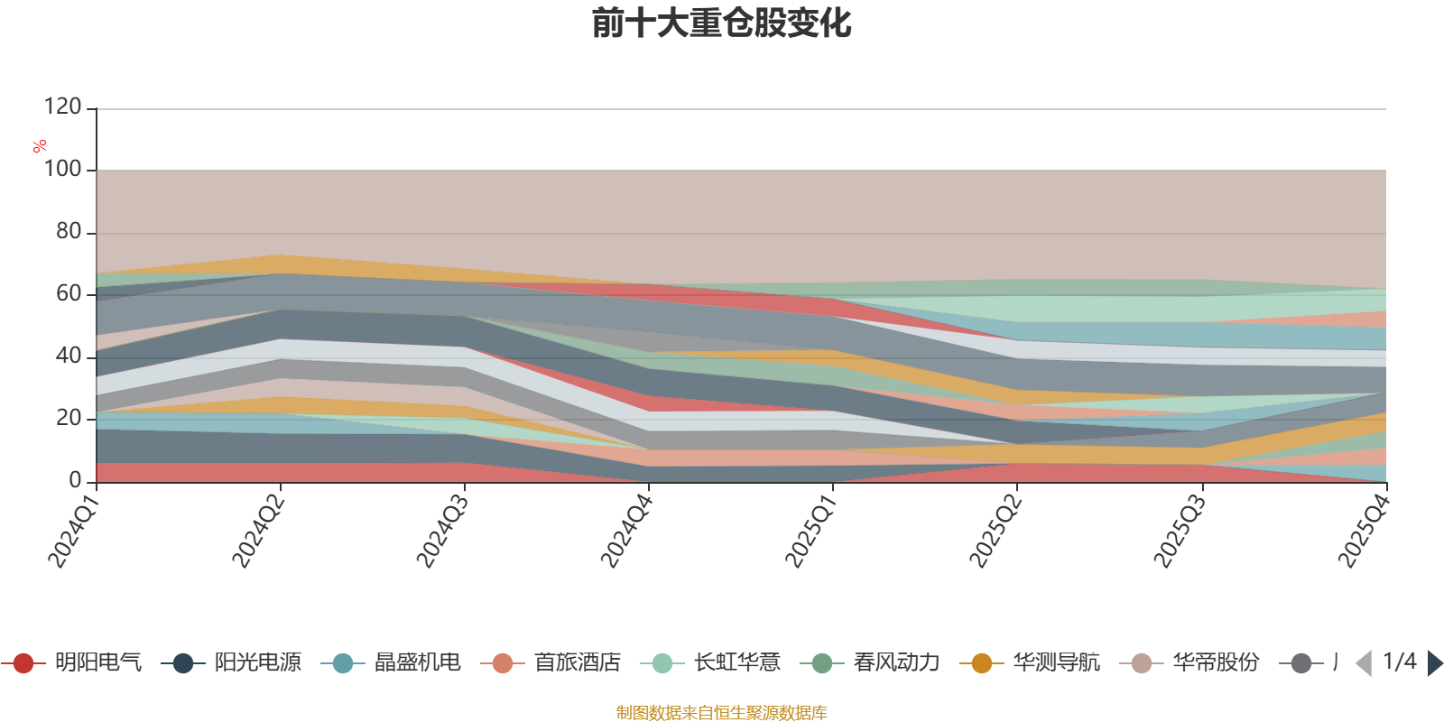 该基金持股集中度较高,近2年前十大重仓股集中度长期超过60%。截至2025年末,基金十大重仓股分别是比亚迪、潮宏基、紫金矿业、涛涛车业、华测导航、晶盛机电、首旅酒店、泛亚微透、春风动力、新华保险。