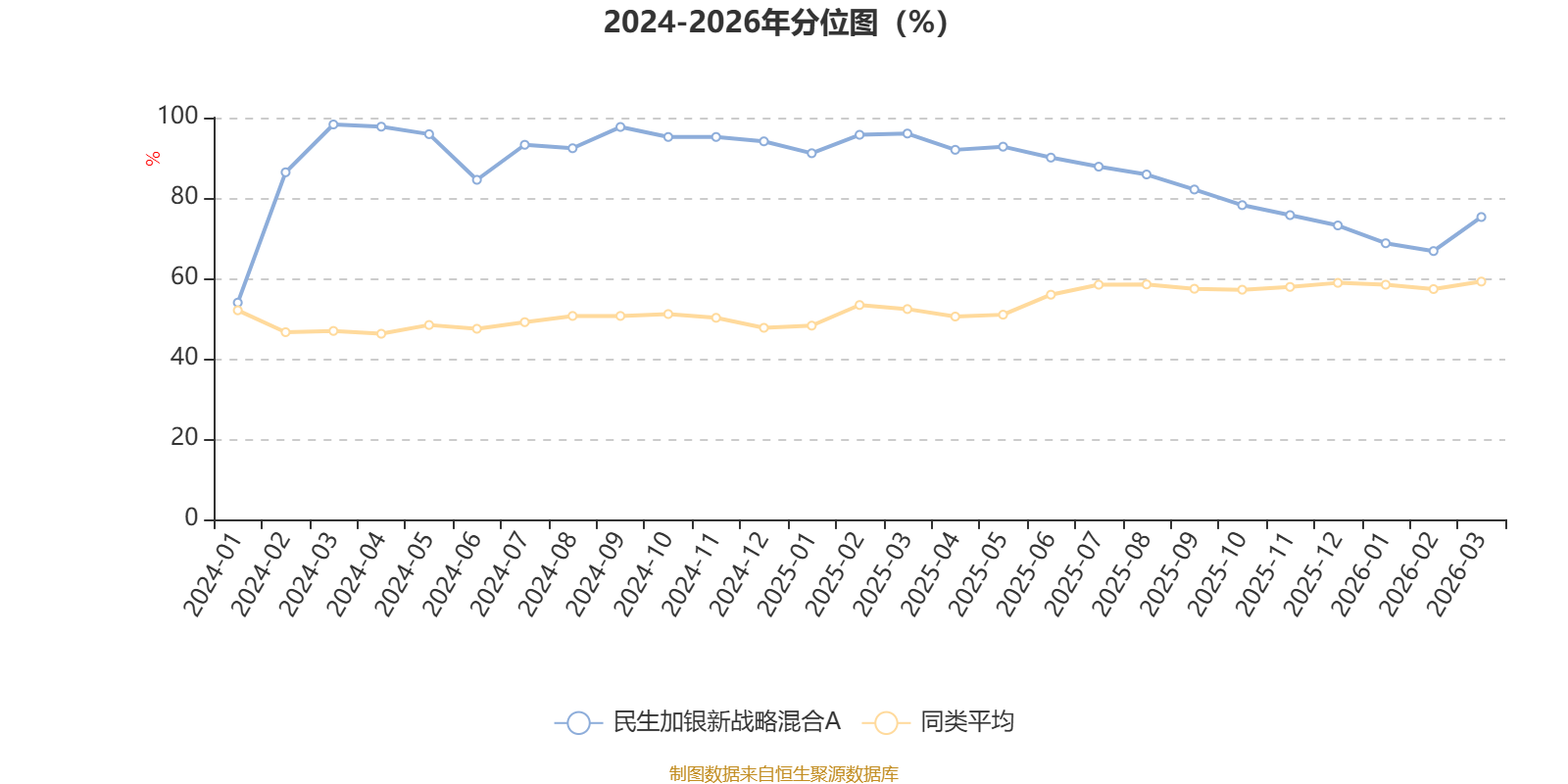 通过所选区间该基金净值增长率分位图,可以观察该基金与同类基金业绩比较情况。图为坐标原点到区间内某时点的净值增长率在同类基金中的分位数。