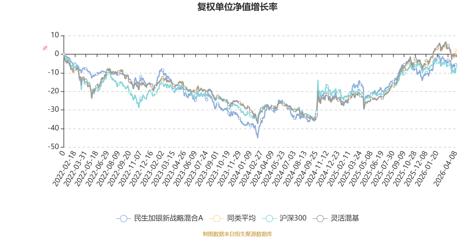 截至4月8日,民生加银新战略混合A近三个月复权单位净值增长率为-1.01%,位于同类可比基金789/1287;近半年复权单位净值增长率为-2.10%,位于同类可比基金974/1286;近一年复权单位净值增长率为28.55%,位于同类可比基金737/1286;近三年复权单位净值增长率为15.46%,位于同类可比基金596/1286。