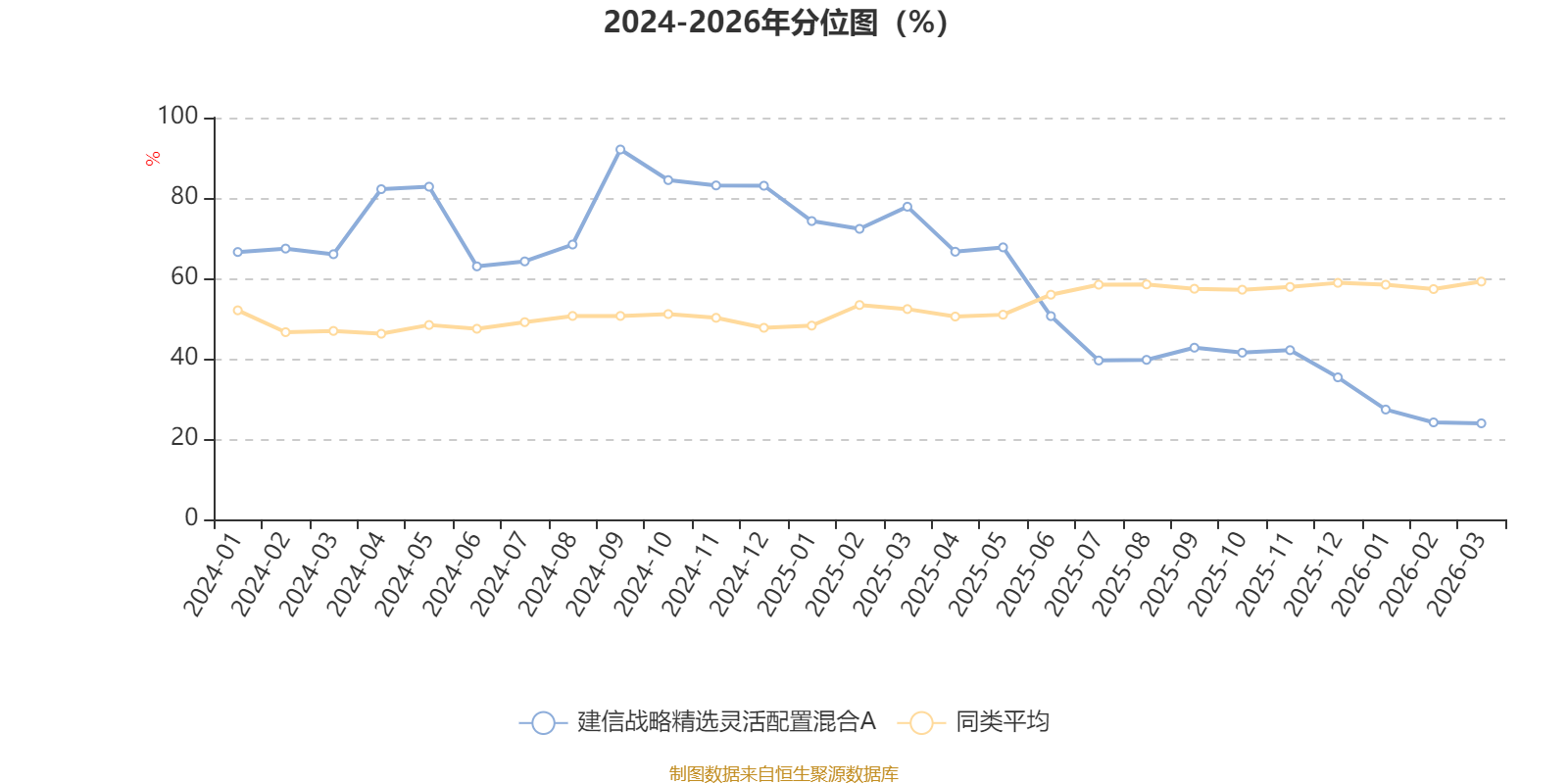 通过所选区间该基金净值增长率分位图,可以观察该基金与同类基金业绩比较情况。图为坐标原点到区间内某时点的净值增长率在同类基金中的分位数。