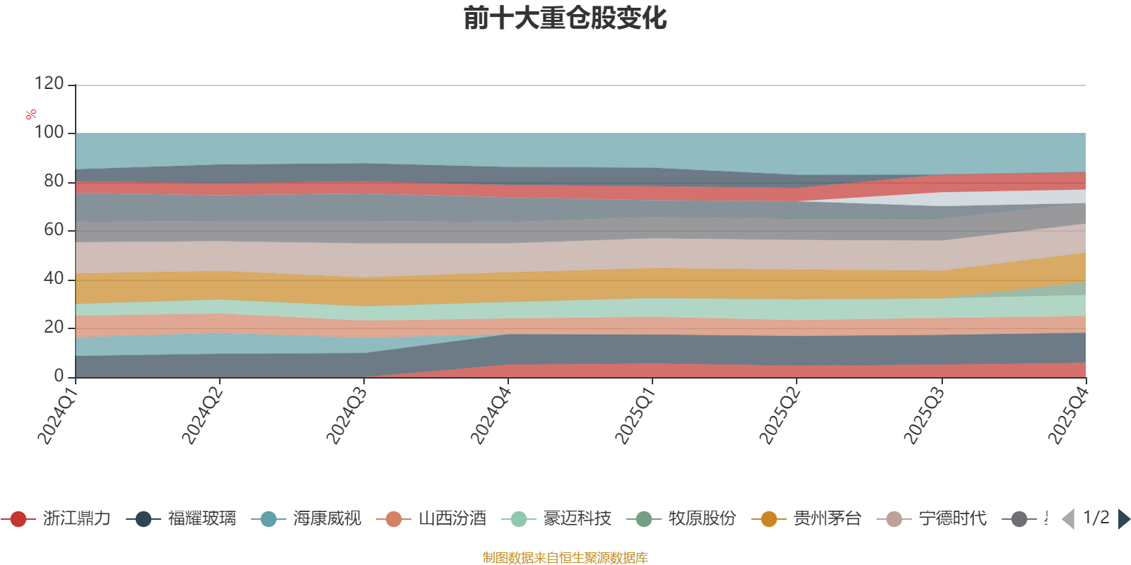 该基金持股集中度较高,且持股标的较为稳定,近2年前十大重仓股集中度长期超过60%。截至2025年末,基金十大重仓股分别是福耀玻璃、贵州茅台、宁德时代、豪迈科技、星宇股份、腾讯控股、山西汾酒、浙江鼎力、中芯国际、牧原股份。