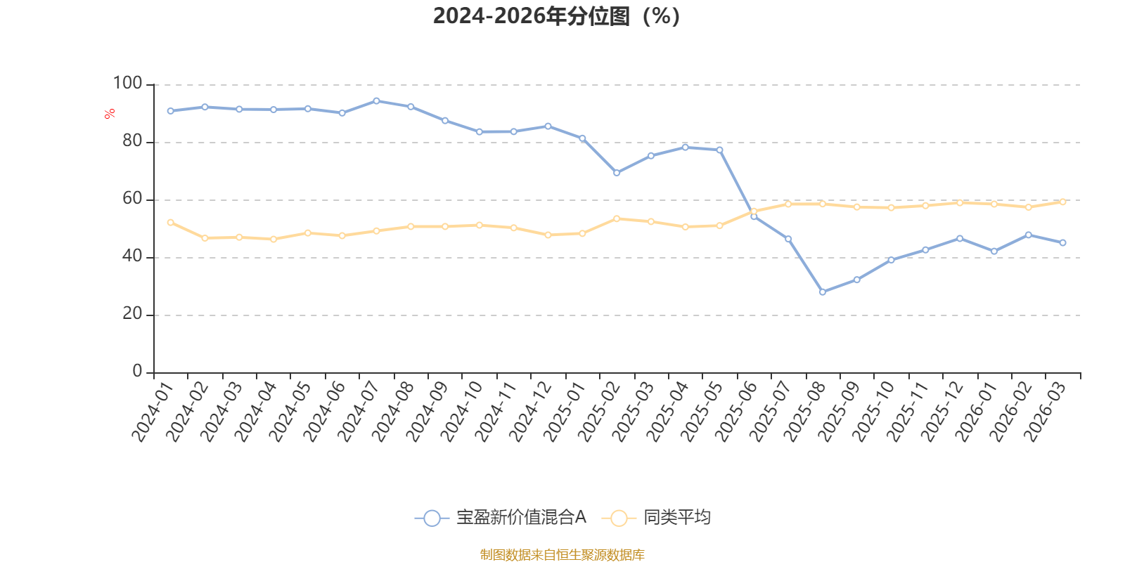 通过所选区间该基金净值增长率分位图,可以观察该基金与同类基金业绩比较情况。图为坐标原点到区间内某时点的净值增长率在同类基金中的分位数。