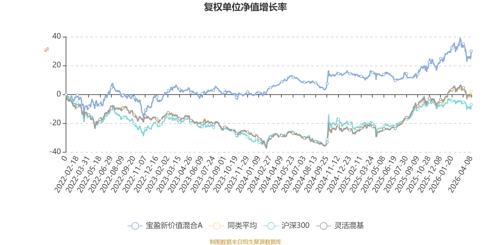 截至4月8日,宝盈新价值混合A近三个月复权单位净值增长率为0.87%,位于同类可比基金538/1287;近半年复权单位净值增长率为9.24%,位于同类可比基金305/1286;近一年复权单位净值增长率为15.25%,位于同类可比基金973/1286;近三年复权单位净值增长率为26.58%,位于同类可比基金386/1286。