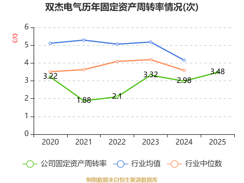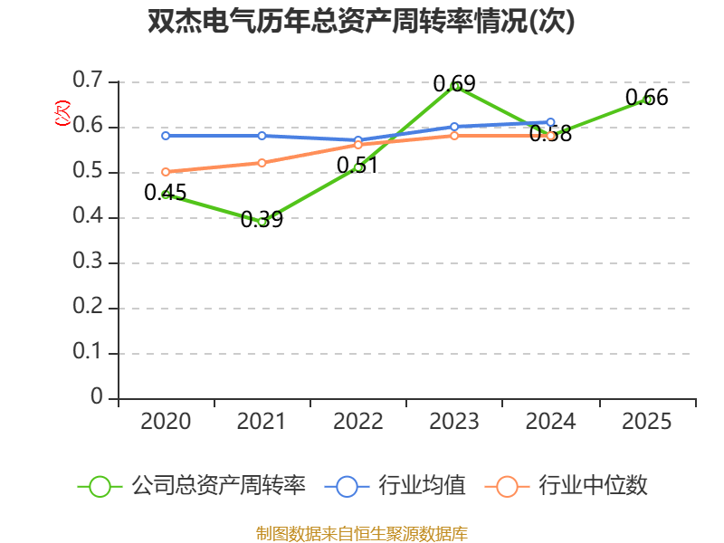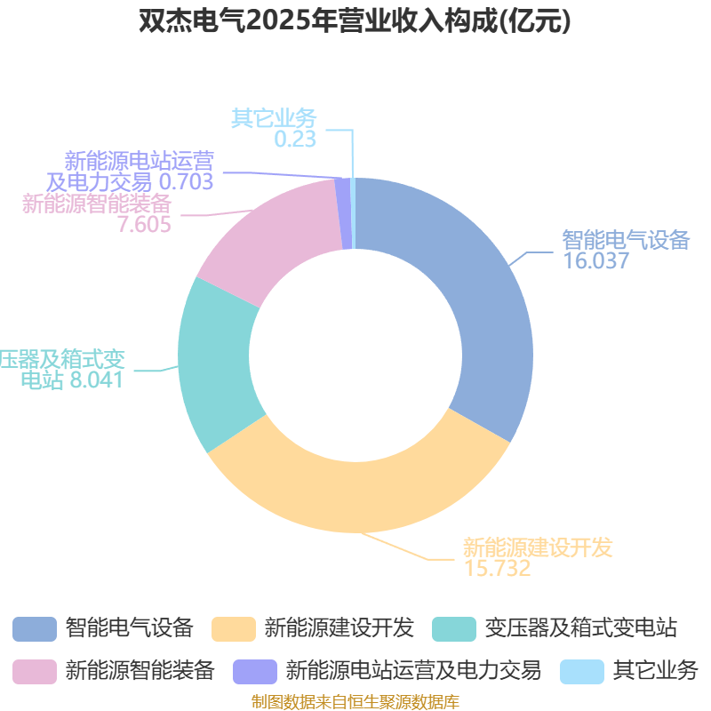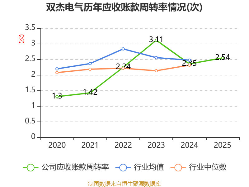 中证智能财讯双杰电气(300444)4月10日披露2025年年度报告。2025年,公司实现营业总收入48.35亿元,同比增长39.23%;归母净利润1.85亿元,同比增长129.41%;扣非净利润8157.66万元,同比下降47.60%;经营活动产生的现金流量净额为526.39万元,上年同期为-6.45亿元;报告期内,双杰电气基本每股收益为0.2322元,加权平均净资产收益率为10.78%。公司2025年度分配预案为:拟向全体股东每10股派现0.6元(含税)。