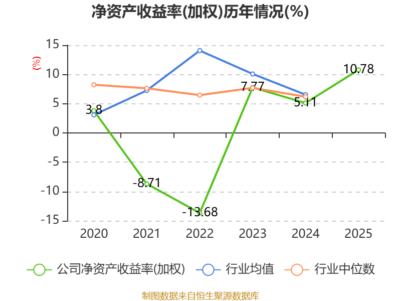 数据显示,2025年公司加权平均净资产收益率为10.78%,较上年同期上升5.67个百分点。公司2025年投入资本回报率为6.04%,较上年同期上升2.09个百分点。