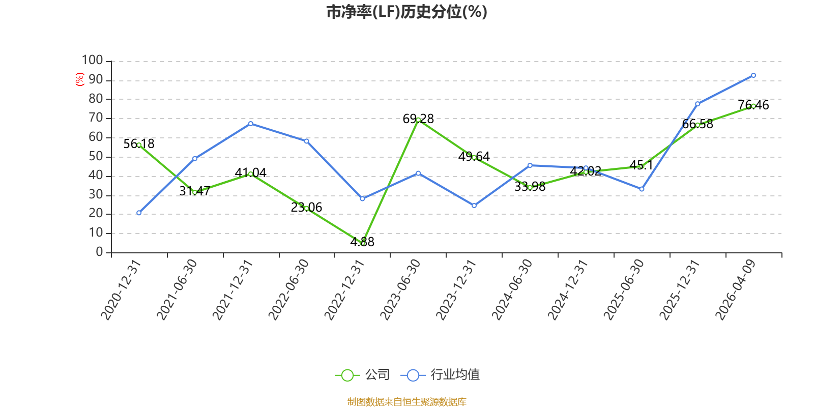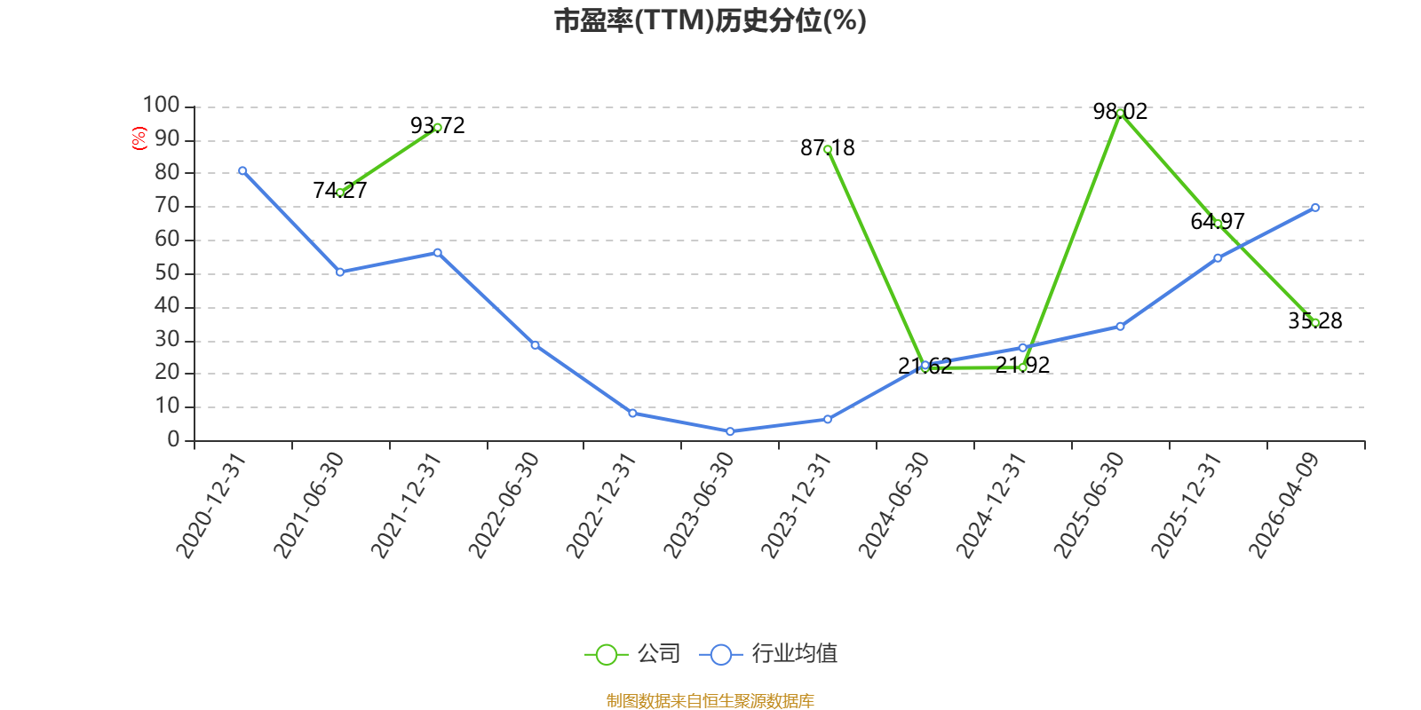 市盈率、市净率为负时,不显示当期分位数,会导致折线图中断。