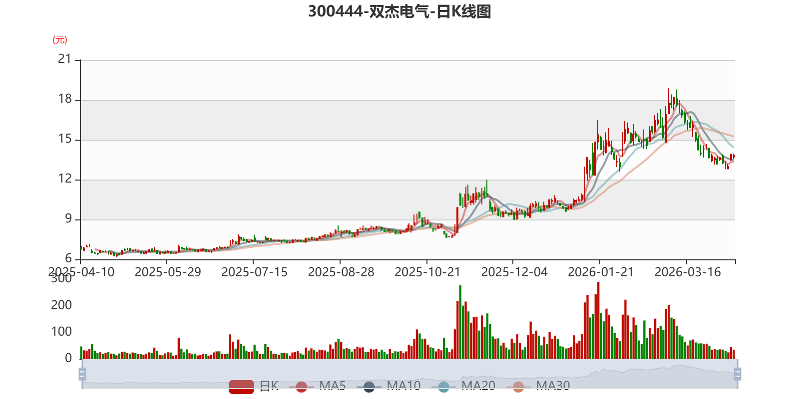 值得注意的是,中登公司数据显示,截至2026年4月3日,双杰电气14.07%股份处于质押状态。年报显示,第一大股东赵志宏质押7956.05万股公司股份,占其全部持股的50.27%;第二大股东赵志浩质押1360.83万股公司股份,占其全部持股的47.05%;第二大股东赵志兴质押1207.69万股公司股份,占其全部持股的41.76%。
