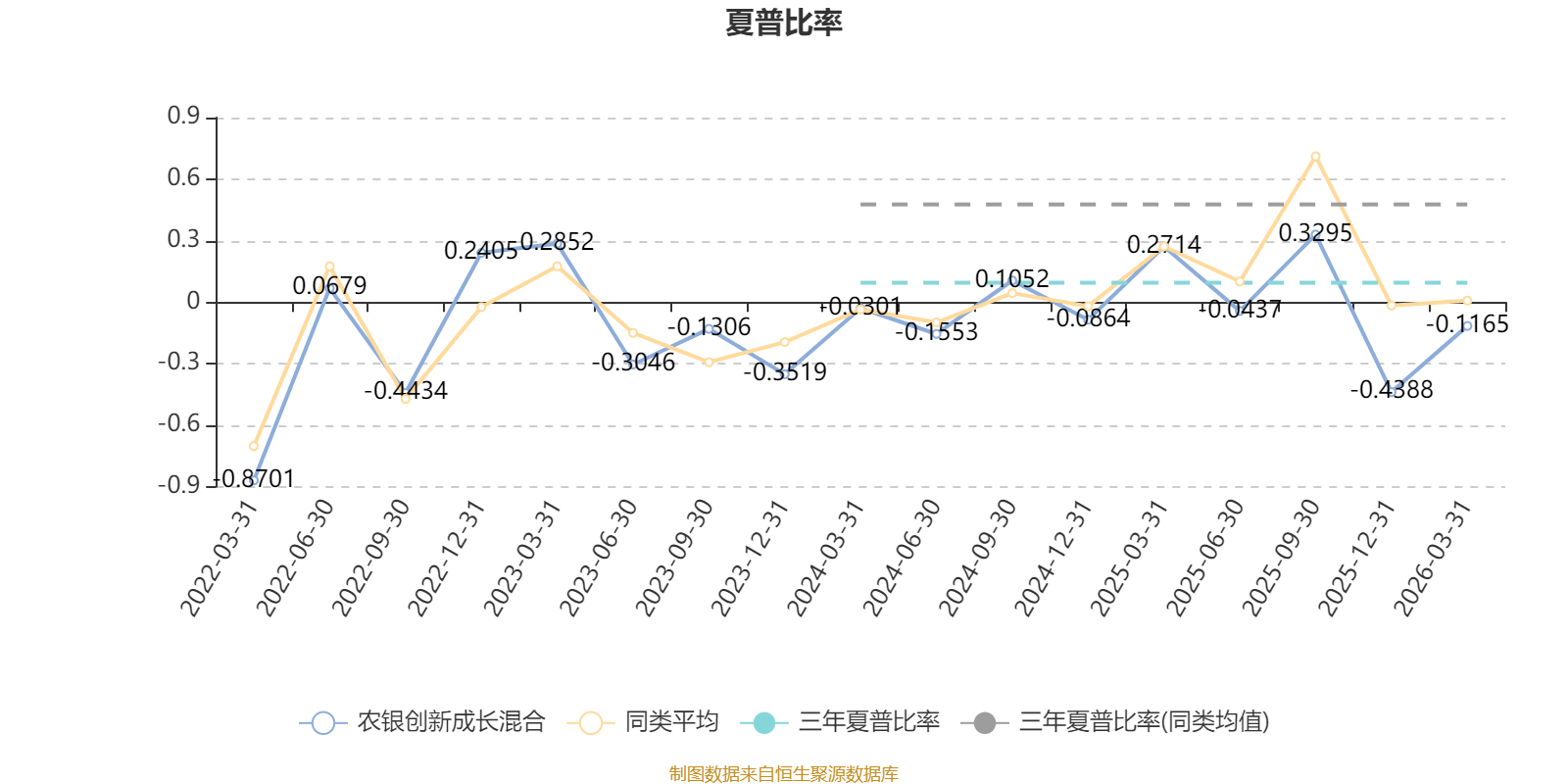 截至3月31日,基金近三年夏普比率为0.0946,位于同类可比基金484/550。