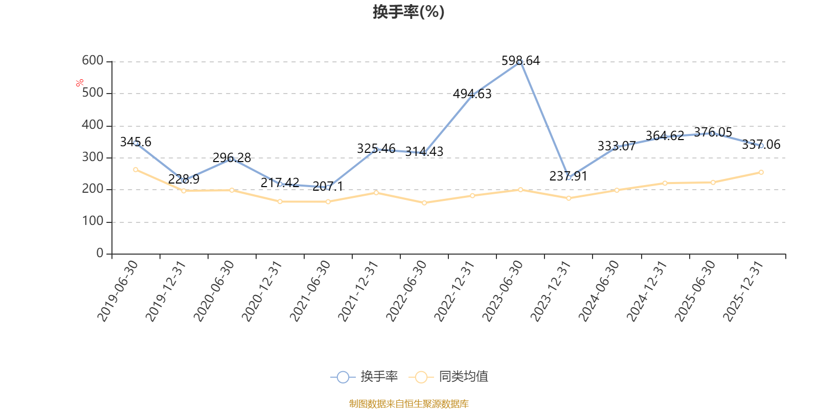 截至2025年12月31日,基金最近一年换手率约696.6%,持续高于同类均值。