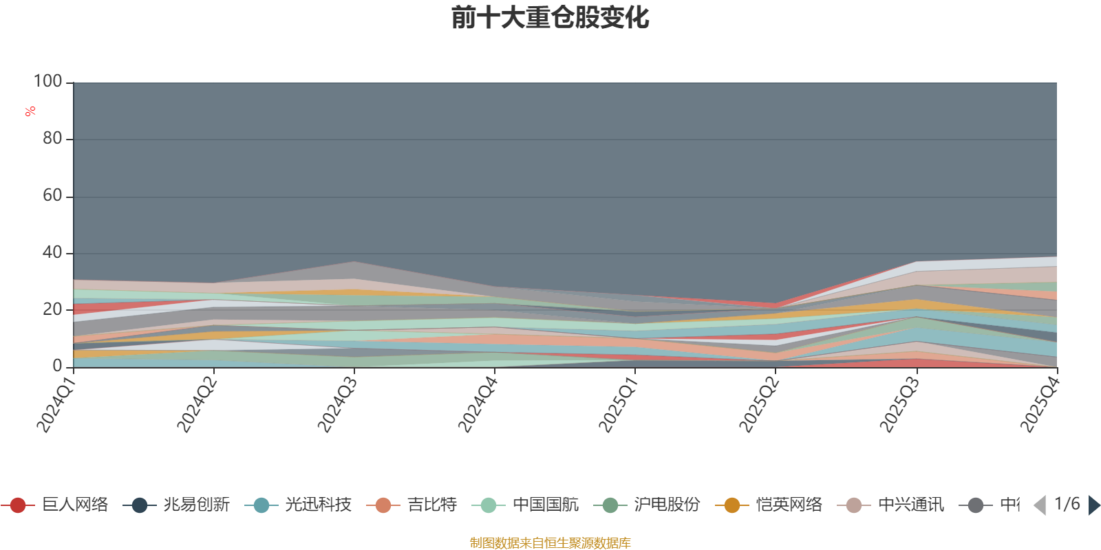 截至2025年末,基金十大重仓股分别是新易盛、中际旭创、寒武纪、中微公司、中芯国际、海光信息、北方华创、雅克科技、复旦微电、天赐材料。