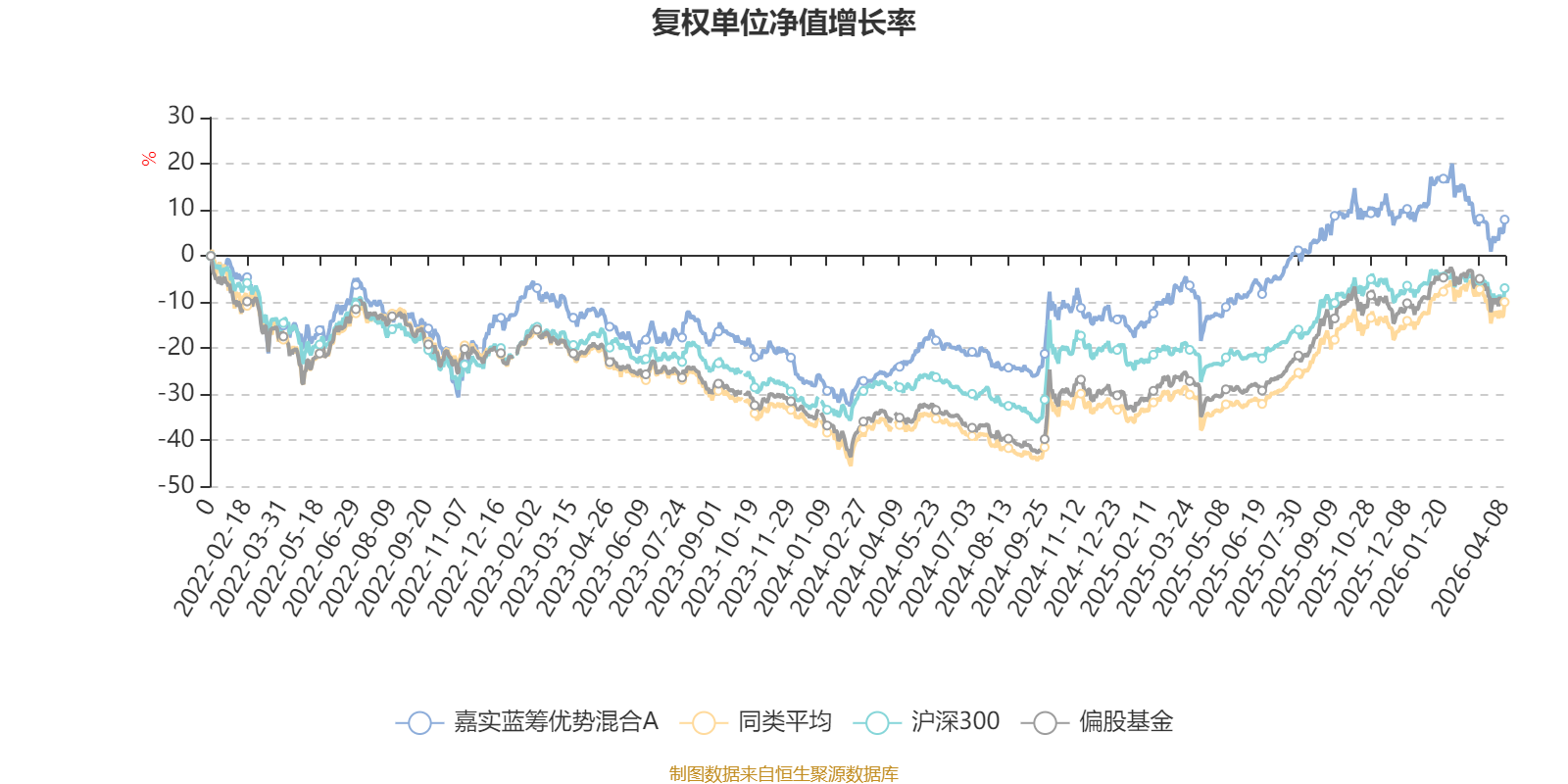 截至4月8日,嘉实蓝筹优势混合A近三个月复权单位净值增长率为-6.44%,位于同类可比基金157/185;近半年复权单位净值增长率为-4.44%,位于同类可比基金130/185;近一年复权单位净值增长率为29.99%,位于同类可比基金122/185;近三年复权单位净值增长率为21.58%,位于同类可比基金68/177。