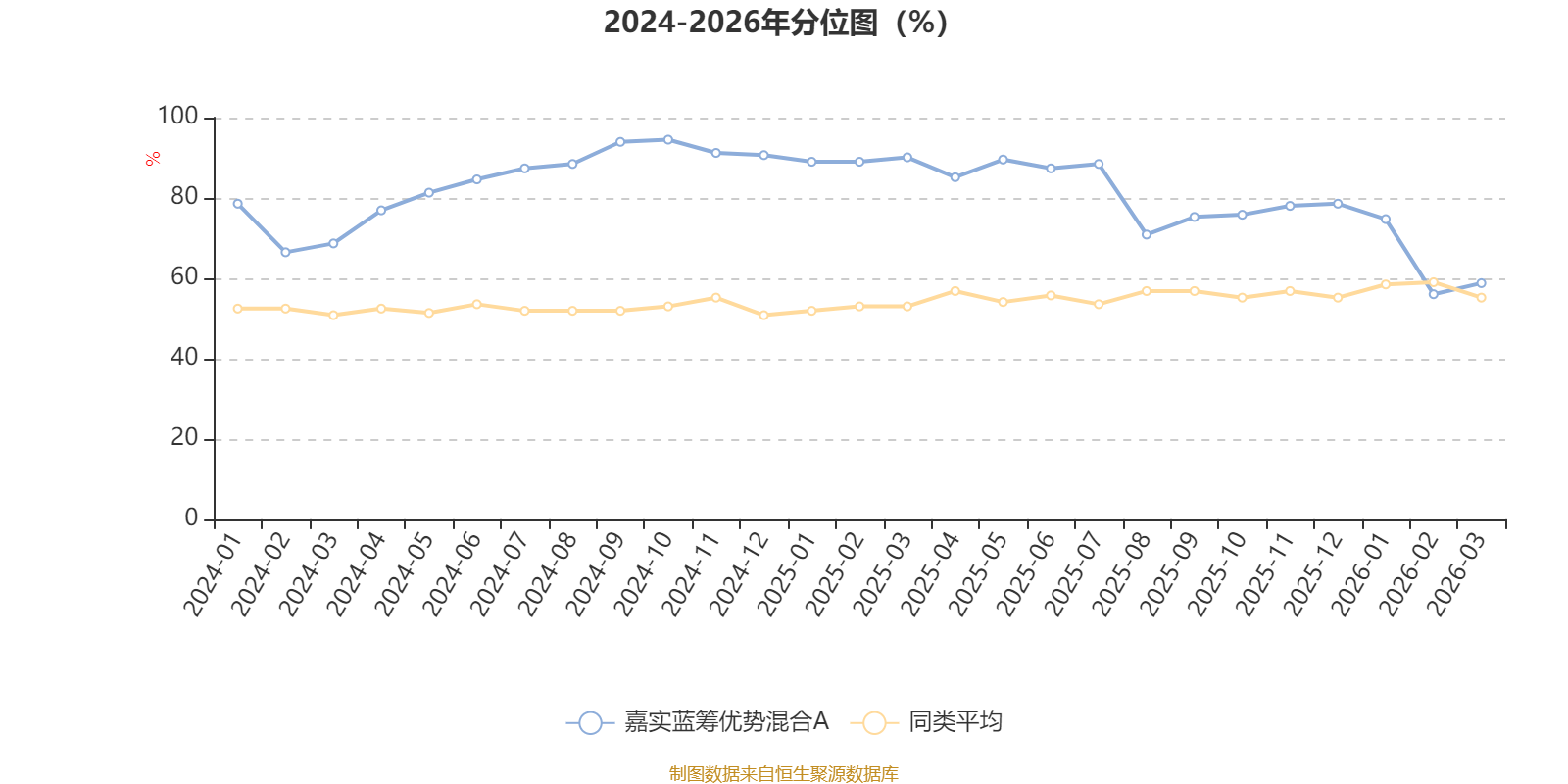 通过所选区间该基金净值增长率分位图,可以观察该基金与同类基金业绩比较情况。图为坐标原点到区间内某时点的净值增长率在同类基金中的分位数。
