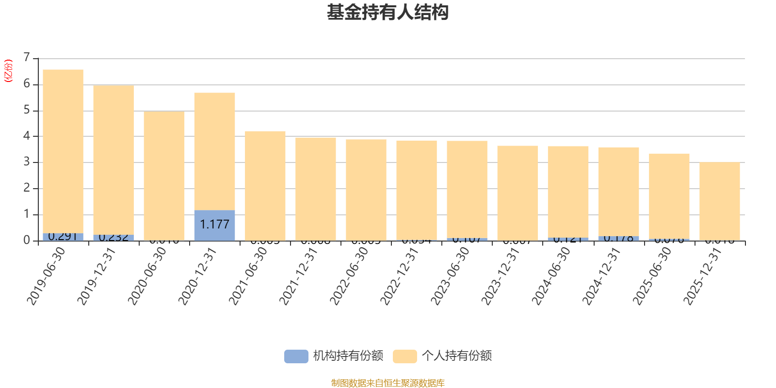 截至2025年12月31日,基金持有人共计1.42万户,合计持有3.02亿份。其中管理人员工持有170.3份,机构持有份额占比0.61%,个人投资者占比99.39%。