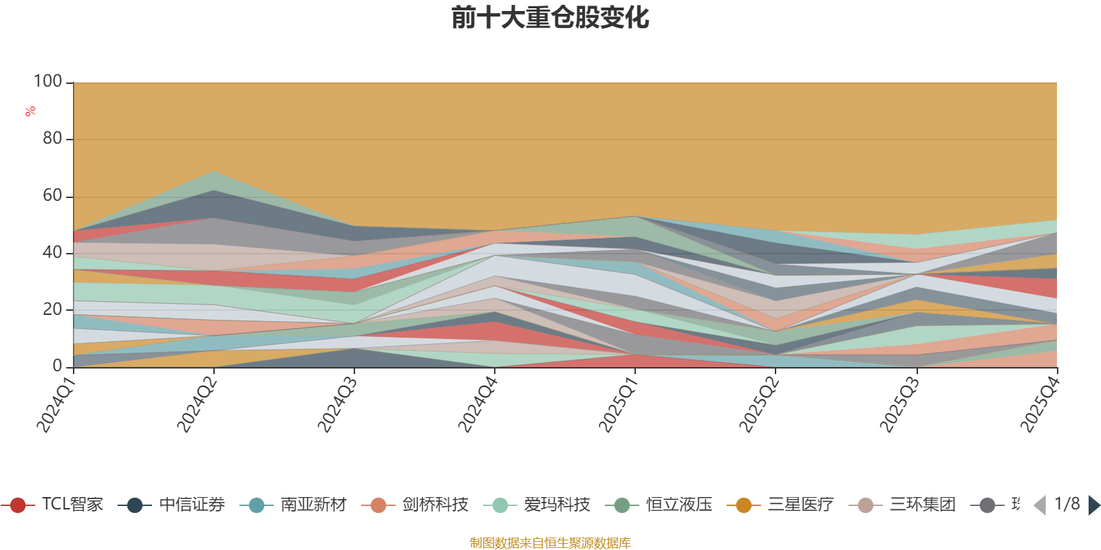 截至2025年末,基金十大重仓股分别是中际旭创、中国平安、剑桥科技、寒武纪、纽威股份、科士达、中芯国际、海光信息、恒立液压、华泰证券。