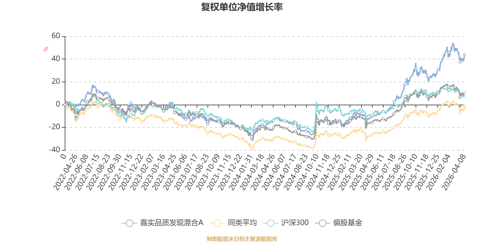 截至4月8日,嘉实品质发现混合A近三个月复权单位净值增长率为5.24%,位于同类可比基金143/689;近半年复权单位净值增长率为7.72%,位于同类可比基金219/689;近一年复权单位净值增长率为74.54%,位于同类可比基金88/685;近三年复权单位净值增长率为41.08%,位于同类可比基金68/417。