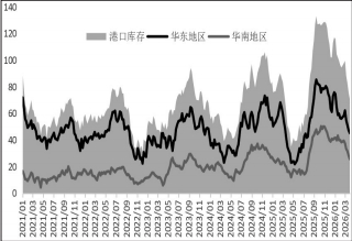 自美以伊冲突爆发以来,国内甲醇港口库存快速回落。截至4月2日,国内甲醇港口库存为70.76万吨,较2月26日冲突爆发前下降26.77万吨,降幅达27.45%。其中,华东地区甲醇港口库存为45.16万吨,较2月26日下降13.03万吨,降幅22.39%;华南地区甲醇港口库存为25.6万吨,较2月26日下降13.74万吨,降幅26.77%。