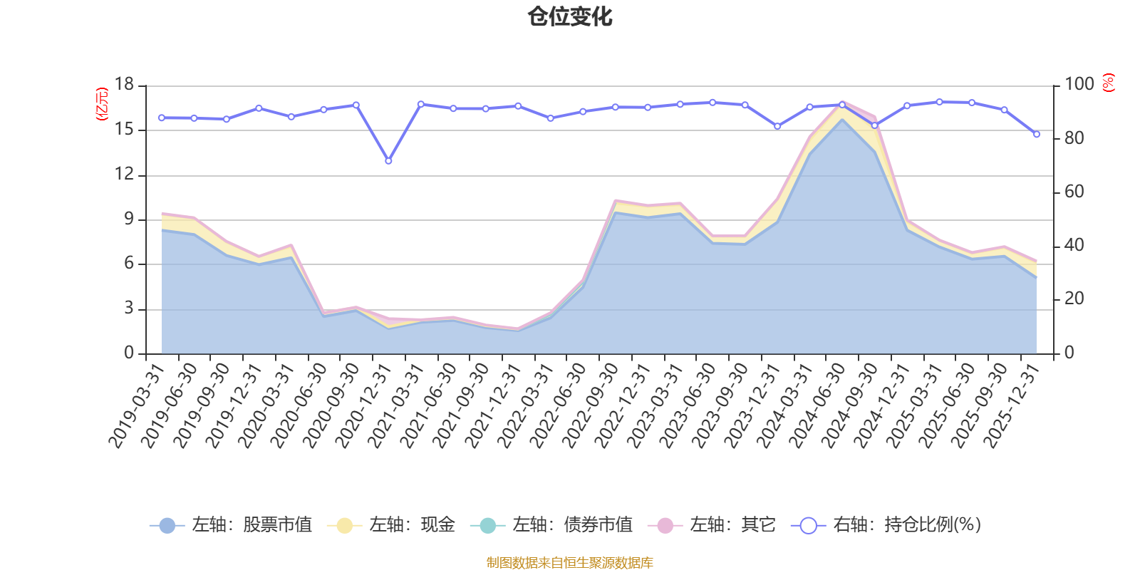 据定期报告数据统计,近三年平均股票仓位为90.58%,同类平均为72.57%。2025年一季度末基金达到93.89%的最高仓位,2020年末最低,为71.9%。