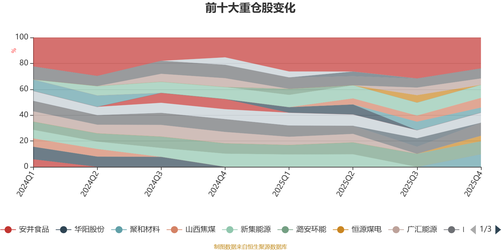 该基金持股集中度较高,近2年前十大重仓股集中度长期超过60%。截至2025年末,基金十大重仓股分别是山煤国际、晋控煤业、潞安环能、聚和材料、陕西煤业、淮北矿业、昊华能源、平煤股份、恒源煤电、中煤能源。