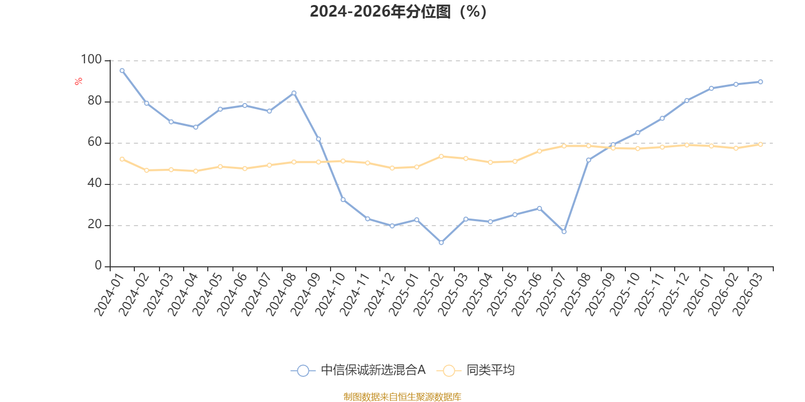 截至4月8日,中信保诚新选混合A近三个月复权单位净值增长率为14.46%,位于同类可比基金46/1287;近半年复权单位净值增长率为33.39%,位于同类可比基金27/1286;近一年复权单位净值增长率为98.68%,位于同类可比基金91/1286;近三年复权单位净值增长率为72.41%,位于同类可比基金61/1286。