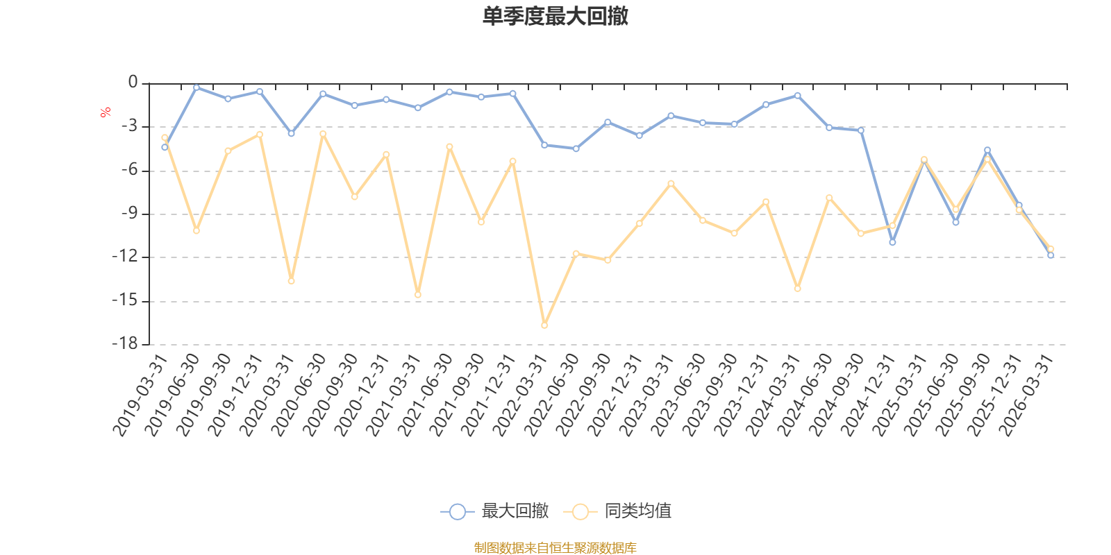 截至4月8日,基金近三年最大回撤为16.69%,同类可比基金排名228/1264。单季度最大回撤出现在2026年一季度,为11.85%。