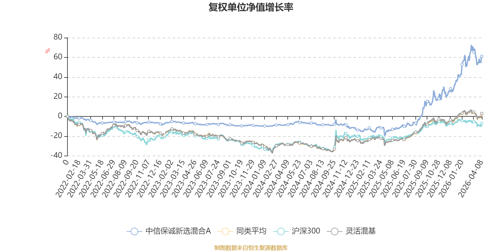 AI基金中信保诚新选混合A(001402)披露2025年年报,2025年基金利润97.83万元,加权平均基金份额本期利润0.3101元。报告期内,基金净值增长率为59.27%,截至2025年末,基金规模为298.13万元。