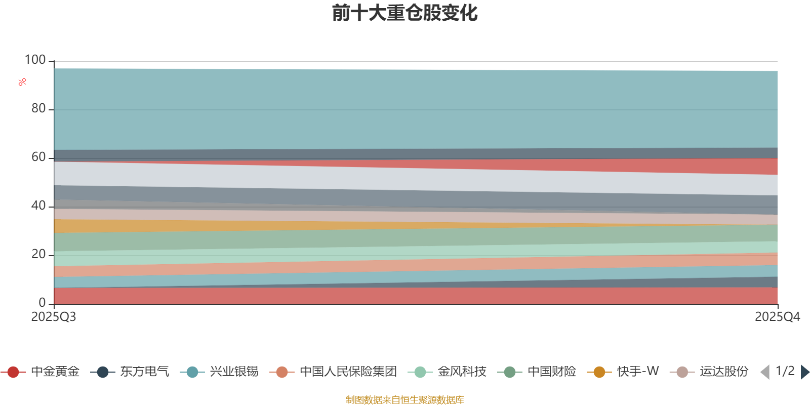 该基金持股集中度较高。截至2025年末,基金重仓股分别是腾讯控股、宏桥控股、中国黄金国际、中国财险、中金黄金、中国人民保险集团、兴业银锡、金风科技、东方电气、中国人保、运达股份。