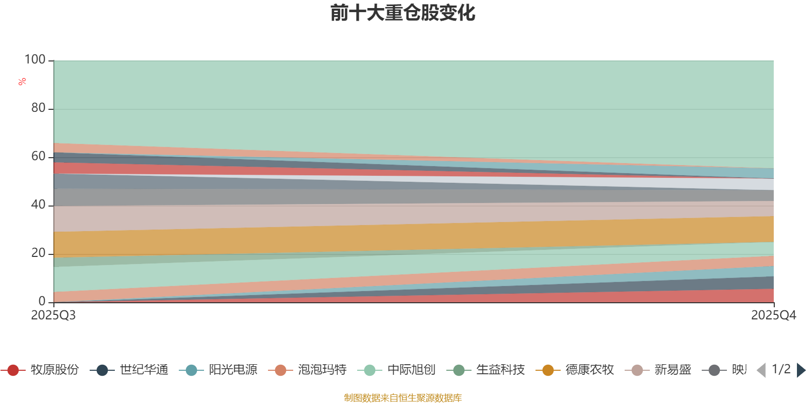 该基金持股集中度较高。截至2025年末,基金十大重仓股分别是德康农牧、新易盛、中际旭创、牧原股份、世纪华通、达意隆、映恩生物-B、阳光电源、泡泡玛特、浙江荣泰。