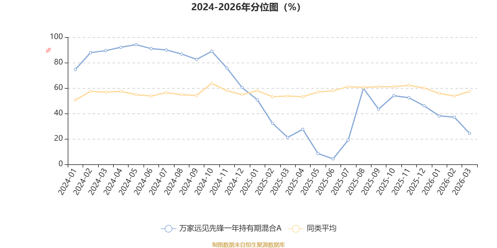 通过所选区间该基金净值增长率分位图,可以观察该基金与同类基金业绩比较情况。图为坐标原点到区间内某时点的净值增长率在同类基金中的分位数。
