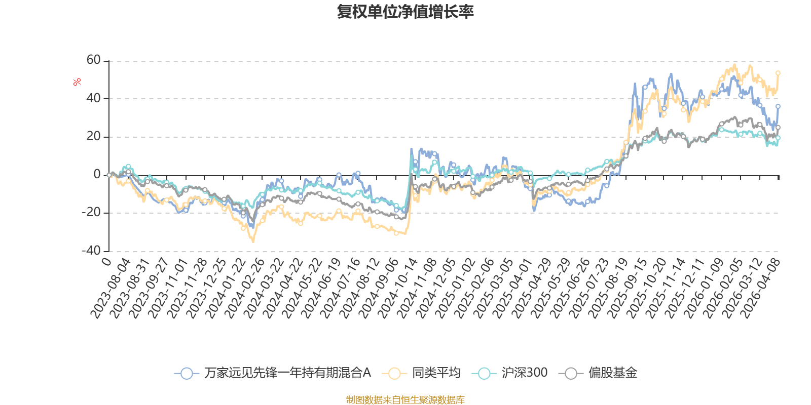 截至4月8日,万家远见先锋一年持有期混合A近三个月复权单位净值增长率为-5.62%,位于同类可比基金190/229;近半年复权单位净值增长率为-5.95%,位于同类可比基金188/229;近一年复权单位净值增长率为68.04%,位于同类可比基金121/229。