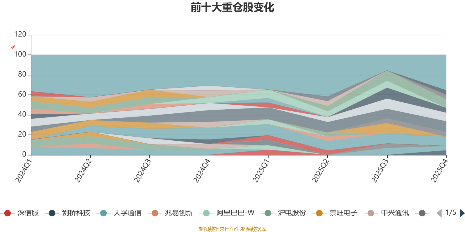 该基金持股集中度较高。截至2025年末,基金十大重仓股分别是海光信息、寒武纪、中际旭创、新易盛、兴森科技、盛科通信、剑桥科技、生益科技、中材科技、天孚通信。