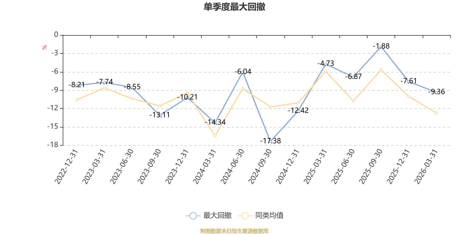 截至4月8日,基金近三年最大回撤为30.91%,同类可比基金排名226/550。单季度最大回撤出现在2024年三季度,为17.38%。