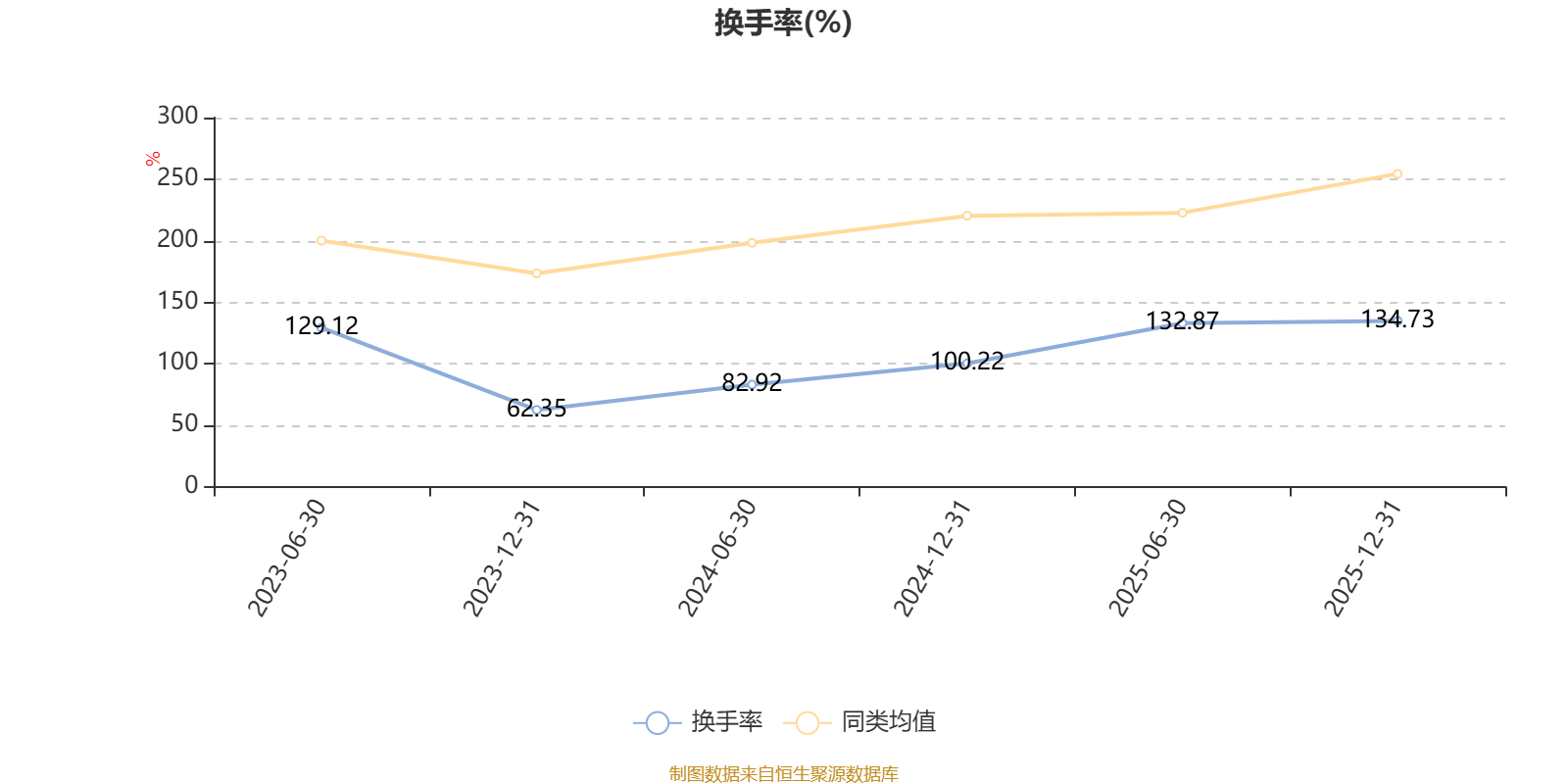 截至2025年12月31日,基金最近一年换手率约267.03%,持续低于同类均值。