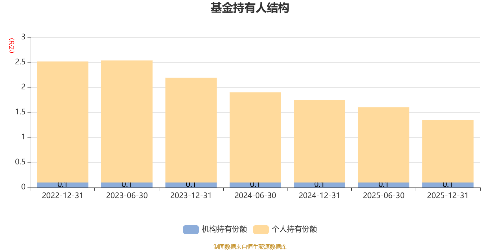 截至2025年12月31日,基金持有人共计1817户,合计持有1.35亿份。其中管理人员工持有189.34万份,占比1.40%,机构持有份额占比7.39%,个人投资者占比92.61%。