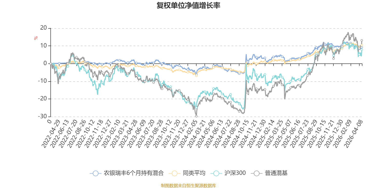 截至4月8日,农银瑞丰6个月持有混合近三个月复权单位净值增长率为-2.10%,位于同类可比基金596/629;近半年复权单位净值增长率为-2.36%,位于同类可比基金607/629;近一年复权单位净值增长率为8.99%,位于同类可比基金237/629;近三年复权单位净值增长率为7.05%,位于同类可比基金417/581。