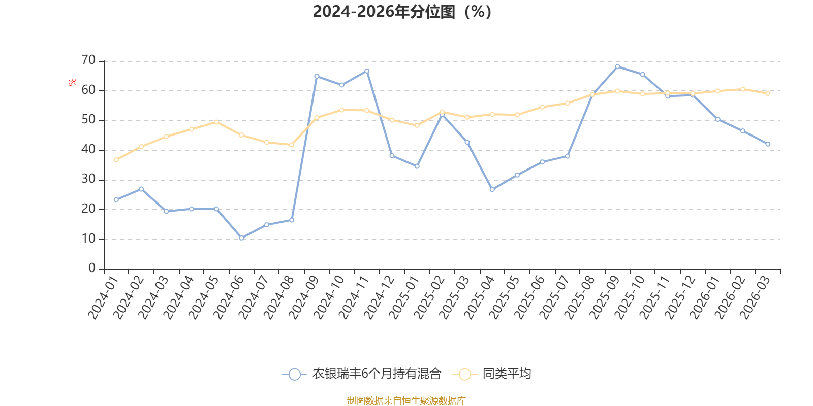 通过所选区间该基金净值增长率分位图,可以观察该基金与同类基金业绩比较情况。图为坐标原点到区间内某时点的净值增长率在同类基金中的分位数。