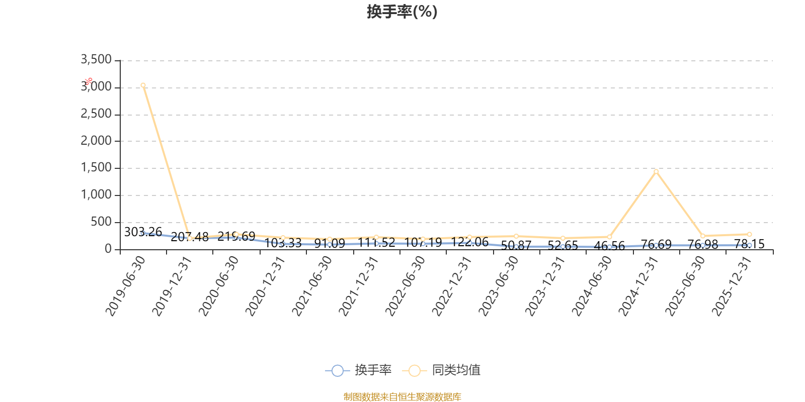 截至2025年12月31日,基金最近一年换手率约153.39%,持续6年低于同类均值。