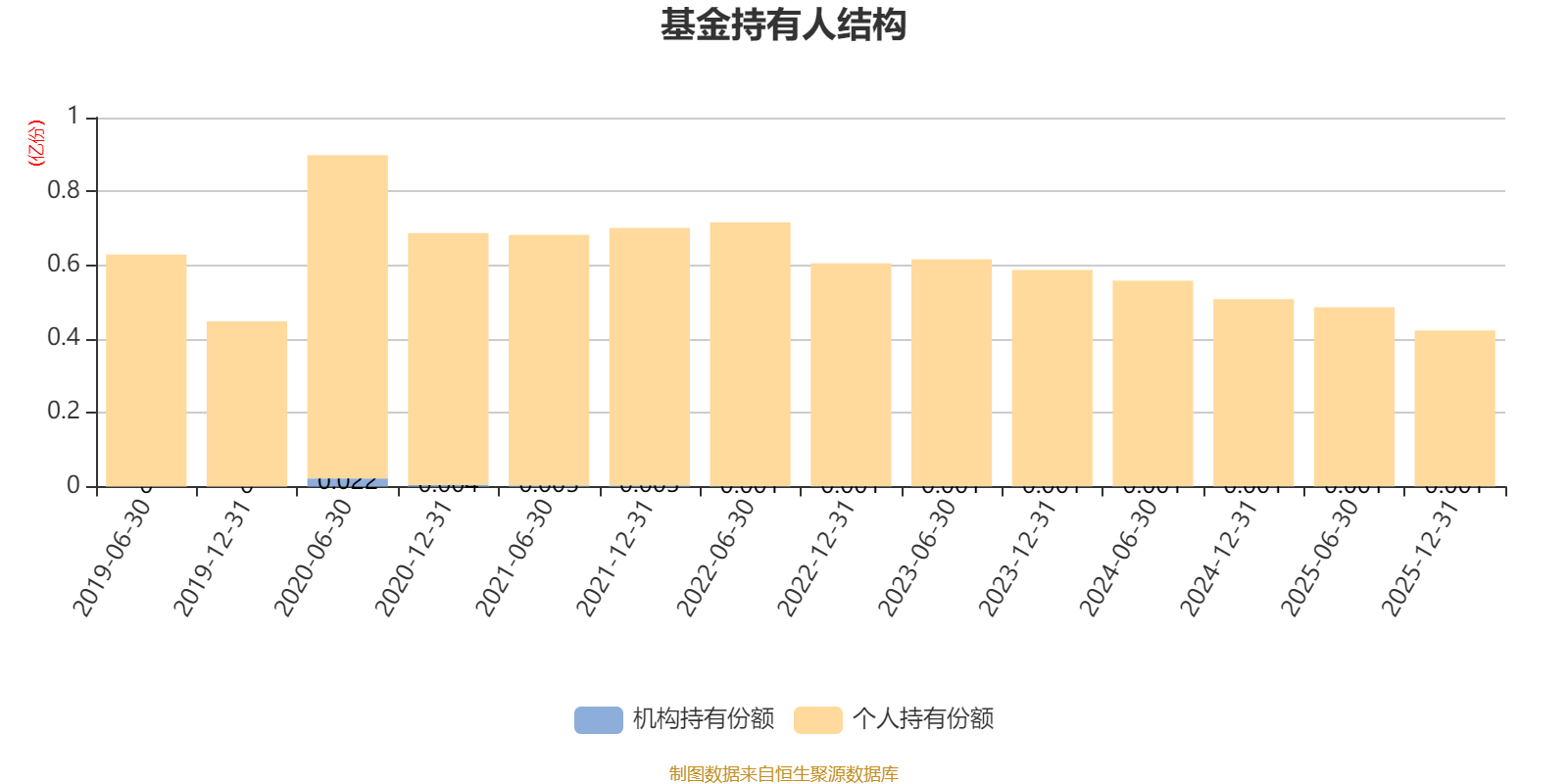 截至2025年12月31日,基金持有人共计9629户,合计持有4224.01万份。其中管理人员工持有5125.36份,占比0.01%,机构持有份额占比0.16%,个人投资者占比99.84%。